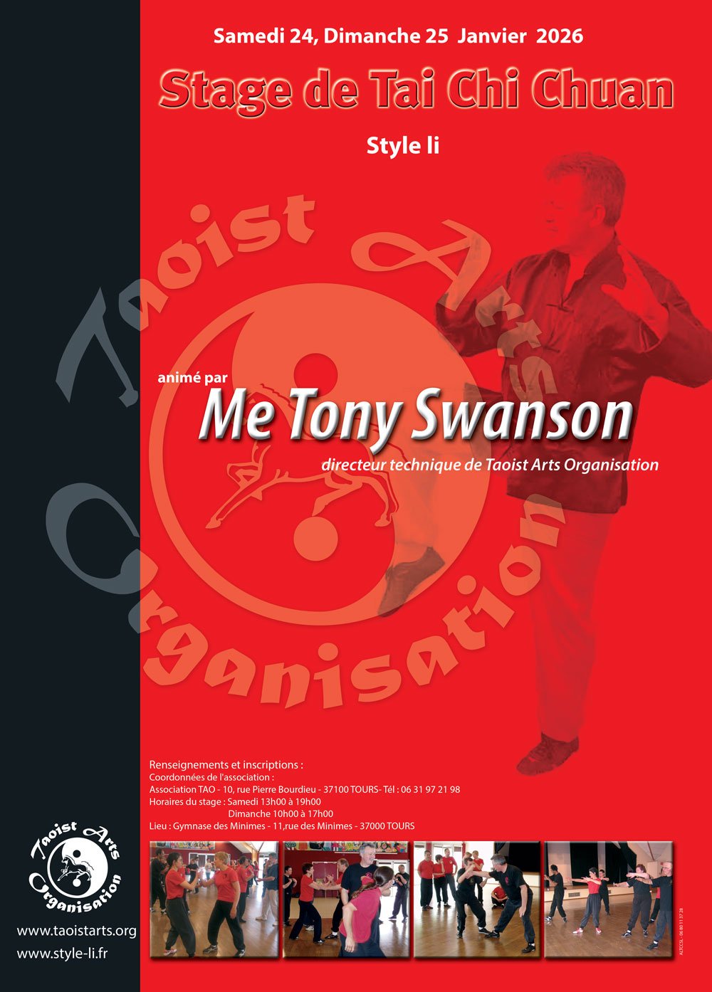 Tony SWANSON (6ème TengChi) , directeur technique de Taoists Arts Association débute les ArtsMartiaux en 1962 avec le Judo , pratique le Karaté (2ème Dan).